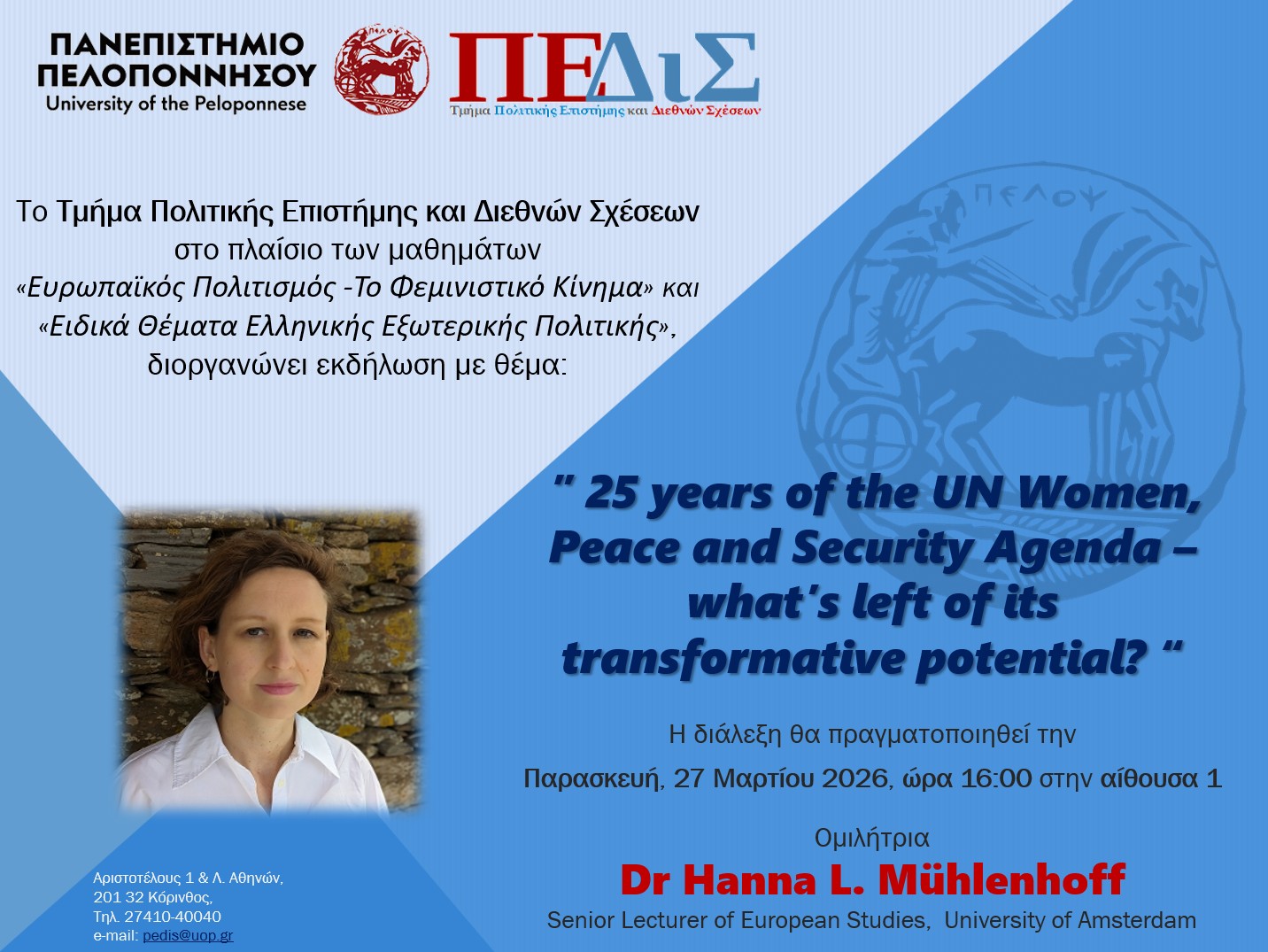 Παρασκευή, 27 Μαρτίου 2026, ώρα 16:00 στην αίθουσα 1