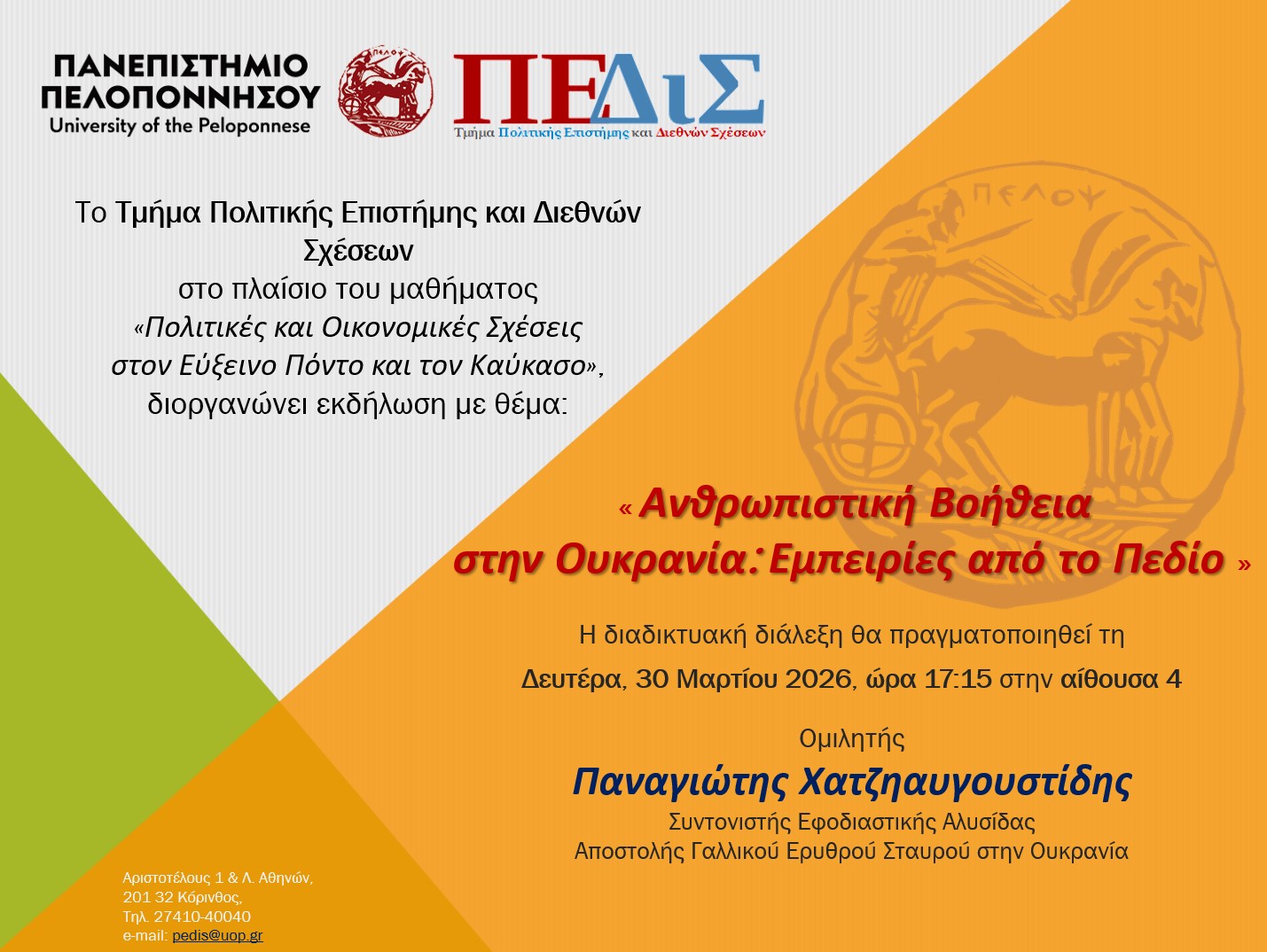 Η διαδικτυακή διάλεξη θα πραγματοποιηθεί τη