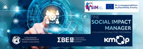 Το Πανεπιστήμιο Πελοποννήσου, ο Σύνδεσμος Βιομηχανιών Ελλάδος (ΣΒΕ) και το ΚΜΟΠ – Κέντρο Κοινωνικής Δράσης και Καινοτομίας σας προσκαλούν στο διαδικτυακό workshop «Γίνε Social Impact Manager», την Τετάρτη, 22 Οκτωβρίου 2025, από τις 17:00 έως τις 19:00.